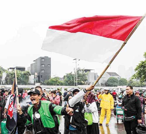 JAKARTA–Demonstrasi dilakukan komunitas ojek online di depan Gedung DPR kemarin (17/9). Mereka menyampaikan enam tuntutan kepada DPR untuk perbaikan transportasi di Indonesia. Sebagian besar tuntutan terkait regulasi ojol yang tidak adil, namun ada pula tuntutan men copot