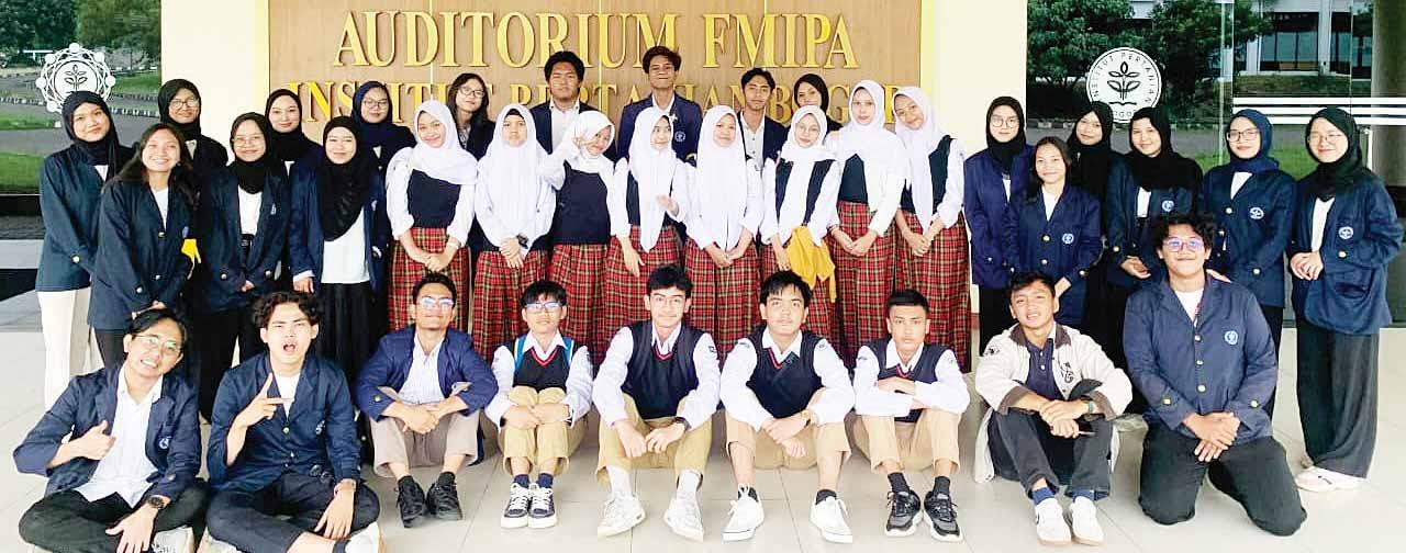 siswa dan siswi SMAIT BBS Bogor foto bersama di depan auditorium FMIPA IPB usai mengikuti kegiatan ICSF.
