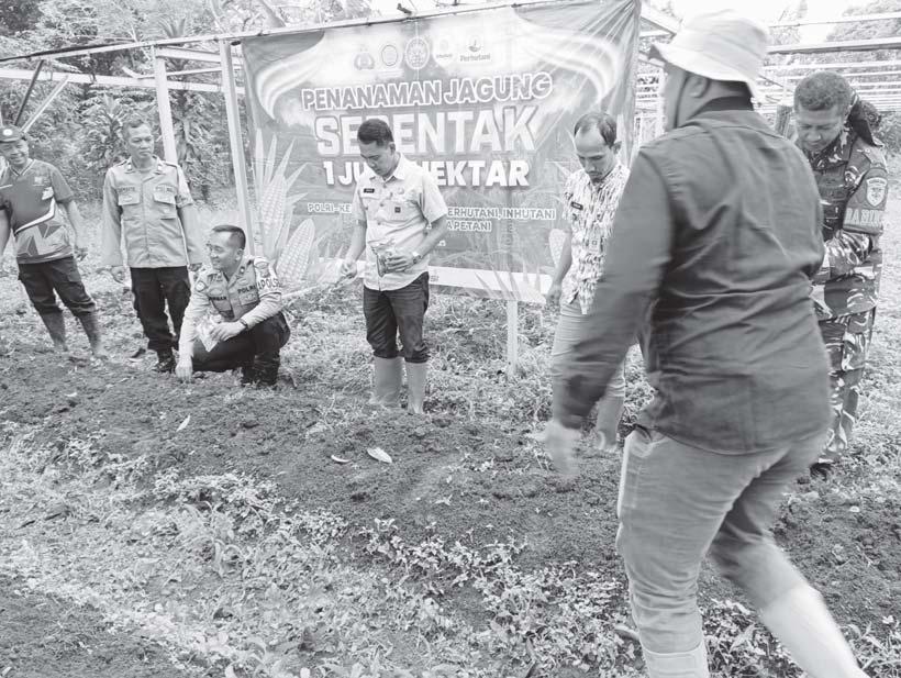 menyerahkan pupuk kandang, urea, dan pupuk NPK. Mereka berharap dengan penanaman jagung ini mampu memberdayakan petani dan mendukung ketahanan pangan. ”Untuk tahun 2025 ini baru sekali ini dilaksanakan secara serentak. Namun, sebelumnya dari 2024 itu kami sudah melak sanakan juga, dalam waktu dekat ada kemungkinan kami akan panen jagung,” ujarnya.
