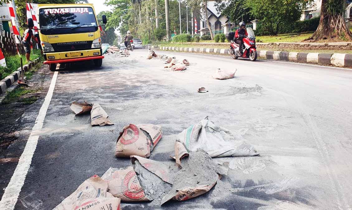 menyempit dan konstruksinya tidak memungkinkan. “Dua jalur untuk roda dua sudah bisa dipakai. Untuk roda empat belum memungkinkan,” tegas Dedie. Selain membuka jalur, Dedie juga menginstruksikan jajaran terkait untuk memastikan faktor keamanan tetap terjaga. Dia minta Dinas Perhubungan dan PU memperhatikan kondisi jalan, jangan sampai ada yang bolong.