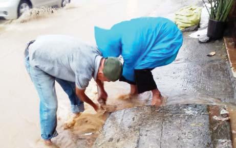 MEGAMENDUNGAir hujan kembali meluap di Jalan Raya Puncak, Gadog Megamendung. Padahal, sampah menumpuk di drainase yang menjadi penyebab banjir telah dibersihkan petugas. Namun, sampah-sampah liar tersebut kembali menumpuk dan menyebabkan banjir ke badan jalan. Penilik PU PPK 5.3 Jawa Barat untuk ruas jalan CiawiPuncak, Rendi membenarkan bahwa pihaknya terpaksa kembali melakukan pengerukan sampah di drainase Jalan Raya Puncak, Gadog. ”Saat hujan deras lagi, sampah kembali menumpuk sehingga air meluap ke jalan utama. Padahal sudah kami bersihkan dengan membongkar saluran drainase,” ungkap dia, Rabu (26/2). Dari pantauannya, banyak sampah rumah tangga serta jenis sampah lain yang menyumbat saluran drainase. Hal itu yang menyebabkan air tersumbat, sehingga meluap hingga badan jalan.