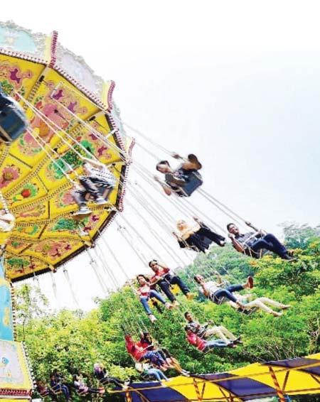 PROMO: Salah satu wahana permainan yang tersedia di Jungleland. Selama puasa Ramadan, harga tiket masuk dibanderol setengahnya untuk pengunjung.