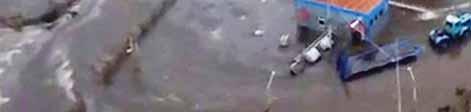 Tangkapan layar video yang dirilis Akademi Ilmu Pengetahuan Rusia menunjukkan dampak tsunami di Severo-Kurilsk, Kepulauan Kuril, Rusia usai gempa M8,7 pada Rabu (30/7).