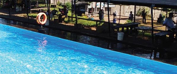 SELAIN berwisata renang, kita juga bisa menikmati sejuknya pemandangan di sekitar kolam yang daerahnya berbukit dan ada area persawahan. Ada tiga kolam untuk anak-anak dan satu kolam dewasa. Ada juga kolam terapi ikan di bagian atas bukit. Terdapat