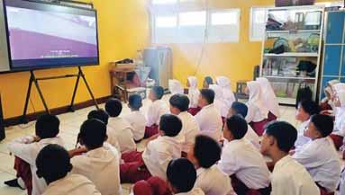 DIGITALISASI: Tampak beberapa siswa salah satu sekolah menyaksikan tontonan yang tayang di Sma rt TV bantuan Kemendikdasmen.