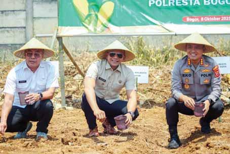 menunjukkan peran aktif Polri di luar tugas utama mereka. “Apalagi program ini berkolaborasi langsung dengan masyarakat. Polri hari ini luar biasa, selain menjalankan tugas utamanya, juga peduli terhadap kondisi pangan di Indonesia,” ujar Jenal Mutaqin. Ia menyebutkan, di Jawa Barat terdapat sekitar 230 hektare lahan yang ditanami bibit jagung hasil dari program swasem ba da pangan Polri. Jenal mene gaskan Pemkot Bogor mendukung penuh langkah yang digagas Polri