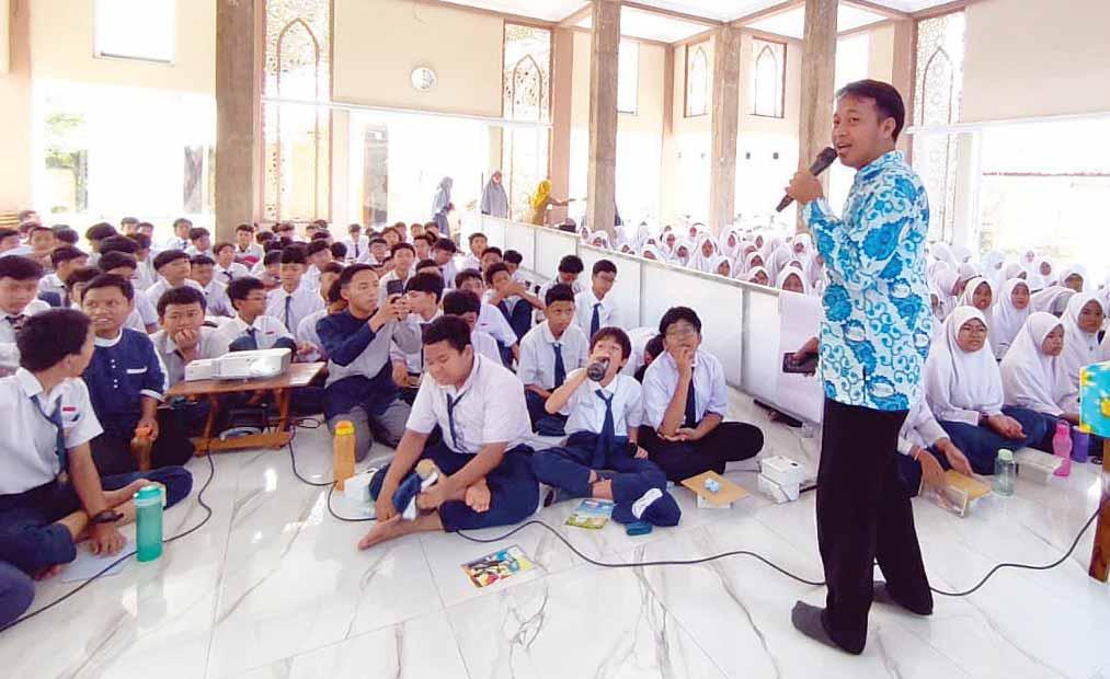 EDUKASI: Pengurus IGI menjelaskan tentang bahaya menggunakan media sosial jika tidak disaring dan digunakan secara bijak di depan siswa-siswi.