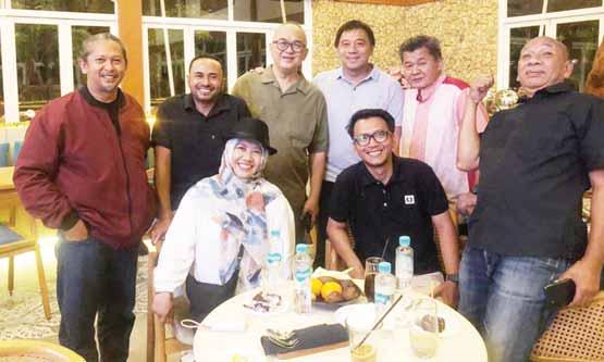 CEO Radar Bogor Nihrawati AS didampingi GM Bisnis Erwin Sofian (duduk), dan GM Digital & IT Beni Irawan (jaket marun) ikut hadir dalam syukuran tokoh Bogor Guntur Santoso (berdiri kedua dari kanan) .