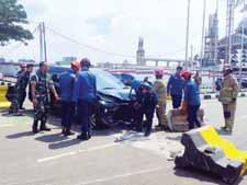 sehingga menabrak beton pembatas jalan,” ungkap Yudi kepada Radar Bogor. Akibat kejadian tersebut, bagian depan kendaraan tersebut mengalami kerusakan yang cukup parah. Dari kejadian itu, kata dia, pelapor memutuskan menghubungi ke Dinas Pemadam Kebakaran Kabupaten Bogor. “Lalu, direspon oleh petugas team rescue dan mempersiapkan peralatan menuju lokasi untuk melakukan proses evakuasi,” jelas dia. (rp2/c)