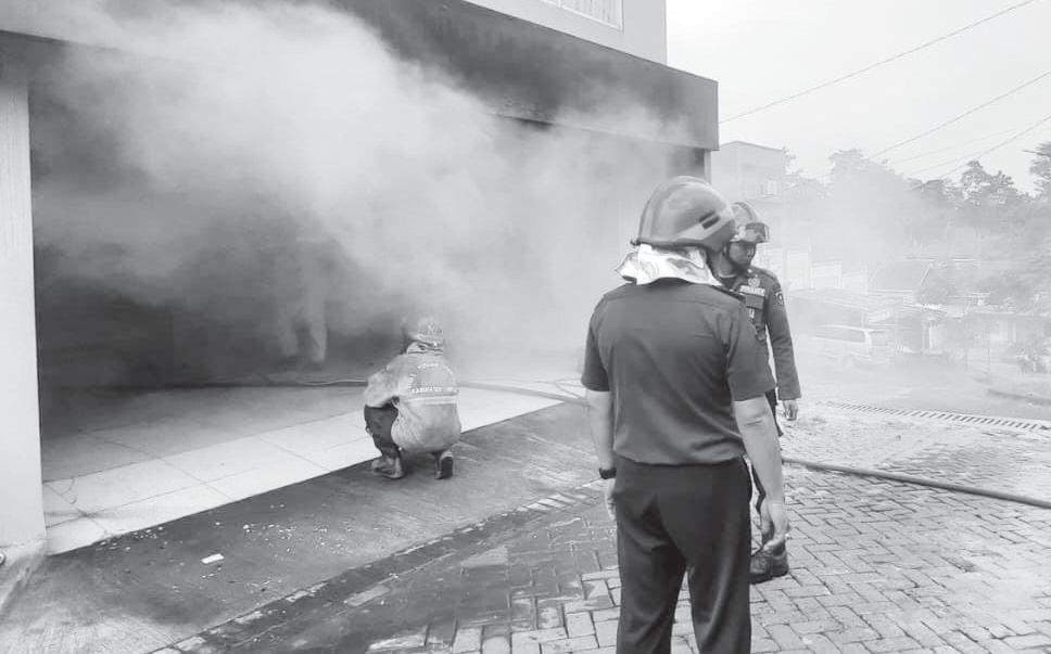 BOGOR– Kebakaran melanda salah satu rumah di kawasan Perumahan Erfina Kencana Regency, Kecamatan Cibinong, Rabu (15/10). Peristiwa tersebut diduga disebabkan oleh korsleting listrik di area basement rumah. Kepala Dinas Pemadam Kebakaran