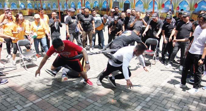 Arya, Kapolresta Bogor Kota Kombes Pol Bismo Teguh Prakoso, Dandenpom III/1 Bogor Letkol Cpm Anggun Hendryantoro saat mengikuti Tarik tambang di Pesta Rakyat, kemarin.