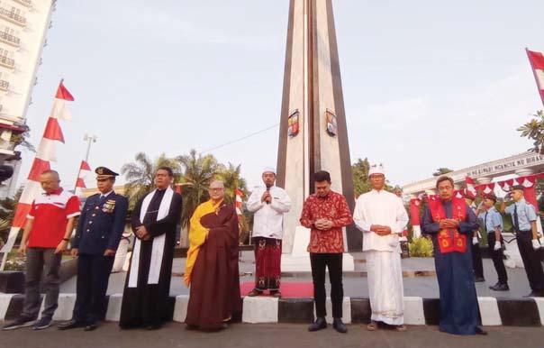 Enam pemuka agama Kota Bogor bersama-sama berdoa di Tugu Kujang, untuk memperingati Hari Kemerdekaan RI ke-78, Kamis (17/8).