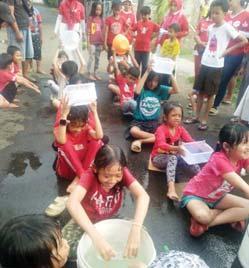 Anak-anak di Perum Graha Grande mengikuti lomba estapet air, sehingga basah semua.