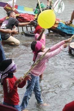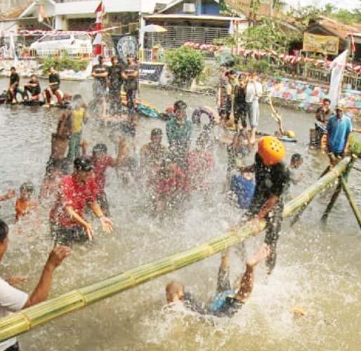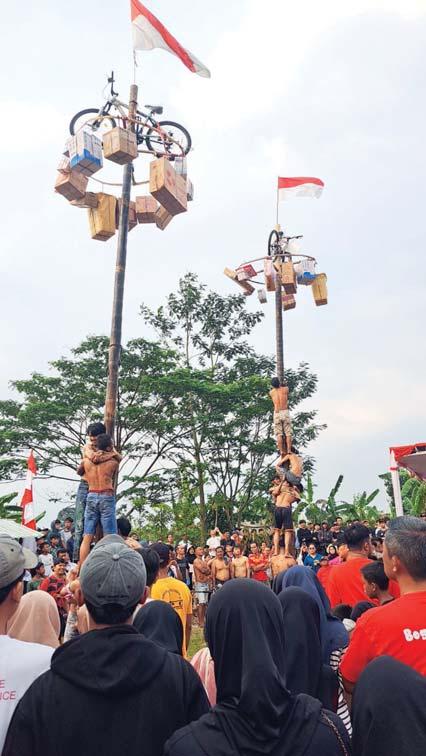 dapat melihat kekompakkan, kerja sama tim, dan strategi warga menggapai puncak pinang yang licin.