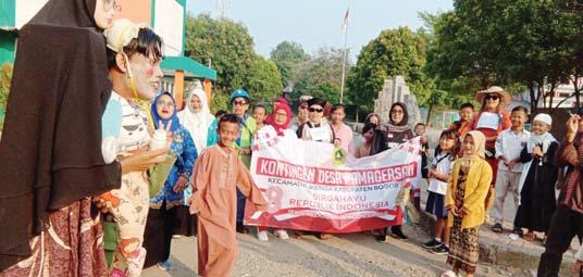 LUCU: Warga Desa Pamagersari Jasinga Kabupaten Bogor berdandan ala bayi dan berbagai jenis profesi dalam arak-arakan kontingen desa.