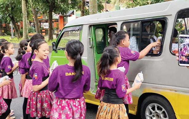 AKSI SOSIAL: Para penari sanggar MCB Youth membagikan langsung takjil kepada pengguna jalan dan penumpang angkot.