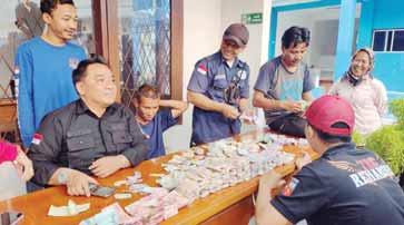 HITUNG UANG: Petugas Dinsos Kota Bogor saat menghitung uang yang didapat dari pria yang diduga gelandangan, yang diamankan di Alun-Alun Kota Bogor, kemarin.