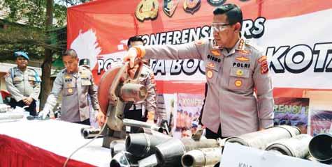 ”Knalpot bising merupakan bagian dari penyakit masyarakat karena mengganggu ketertiban dan ketentraman warga Kota Bogor,” kata Kombes Pol Bismo Teguh Prakoso saat press release di halaman Mako Polresta Bogor pada Kamis, (31/8). Selain dapat mengganggu