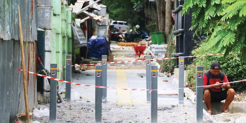 KEJAR TARGET PEKERJAAN: Pembangfunan pedestrian di kawasan Gor Pajajran, Kota Bogor. Pemkot Bogor genjot penyerapan anggaran melalui beberapa kegiatan pembangunan.