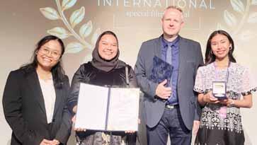 Rahmawati (Sutradara Mama Jo), Fabian Gabor (Festival Director), Nanda Puspita (Penulis naskah) saat menerima penghargaan Special Prize of Jury di acara Internasional Special Film Festival.