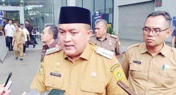 DOORSTOP: Bupati Bogor, Rudy Susmanto saat menyampaikan keterangan usai menghadiri konsolidasi regional tata kelola peningkatan program MBG, di SICC, Sentul, Kabupaten Bogor.