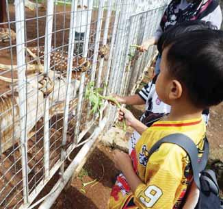 SELAIN bermain di area Playground, pengunjung juga bisa berinteraksi dengan rusa yang ada di penangkaran. Terdapat delapan ekor rusa ditempatkan di area Pendopo. Kehadiran rusa-rusa lucu itu pun menciptakan daya tarik baru bagi warga yang melintas maupun berkunjung. Keberadaan rusa tersebut membuat warga yang datang termasuk anak-anak terlihat antusias. Banyak yang memanfaatkan momen ini untuk mengajak keluarga berinteraksi langsung dengan hewan jinak tersebut. Pendopo pun kini menjadi ruang rekreasi