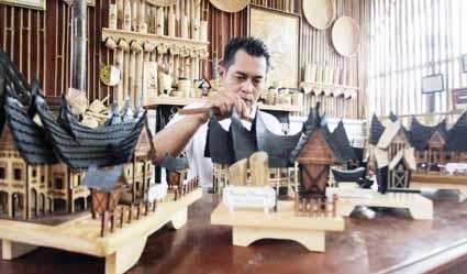 ujar Micky. Saat ini berbagai produk bisa dihasilkan oleh Micky, dan dua pekerja yang membantunya. Gelas, tumbler, mainan, miniatur rumah adat, dan berbagai produk lain bisa dibuat di workshopnya itu. Bahkan dalam jumlah puluhan hingga ratusan buah. ”Untuk miniatur kami bisa buat 5 pcs dalam sehari, sementara untuk gelas atau tumbler bisa 50 pcs sehari. Kalau harganya tergantung