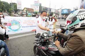 Sebanyak 1.000 masker dibagikan ke para pengendara dan pejalan kaki, yang melintas di Simpang Warung Jambu, Kecamatan Bogor