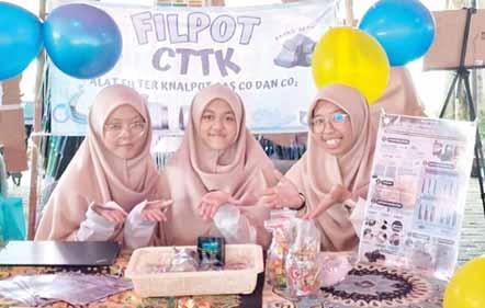 tangan tiga siswi SMAIT Ummul Quro Bogor, arang dan cangkang telur diolah menjadi filter knalpot kendaraan bermotor. Hasilnya mencengangkan. Buangan kadar karbon monoksida (CO2) bisa turun hingga 99 persen.
