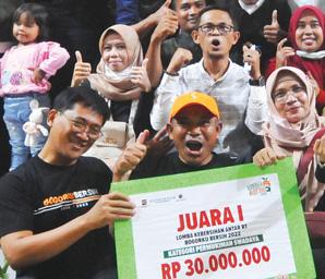 Kemeriahan salah satu peserta Bogorku Bersih kategori Pemukiman Swadaya saat pengumuman pemenang, Selasa (22/11). Pembacaan doa yang dilakukan mantan Rektor UIKA, Ending Bahruddin, mengawali acara Awarding Bogorku Bersih 2022. Wakil Wali Kota Bogor, Dedie A Rachim (baju putih) berfoto bersama dengan pemenang kategori bank sampah. Rektor UIKA Endin Mujahidin memberikan penghargaan kepada pemenang kategori TPS3R. Wali Kota Bogor, Bima Arya berfoto bersama dengan para pemenang kategori pemukiman swadaya. Ketua DPRD Kota Bogor, Atang Trisnanto sumringah saat memberikan penghargaan kepada pemenang kategori TPS3R. Panitia Bogorku Bersih 2022 berfoto bersama. Wakil Ketua Tp PKK Kota Bogor Yanti Rachim menghadiri Awarding Bogorku Bersih 2022 di Atrium lantai II, Botani Square. Penanggung jawab Bogorku Bersih 2022, Hazairin Sitepu sumringah memberikan plakat penghargaan kepada juara kategori pemukiman tepi sungai. Penanggungjawab Bogorku Bersih 2022 (kanan) Hazairin Sitepu memberi penghargaan kepada para sponsor. Peluk haru para pemenang kategori permukiman teratur. Penampilan ciamik dua penari sanggar membuka Awarding Bogorku Bersih 2022. Wali Kota Bogor, Bima Arya dan penanggung jawab Bogorku Bersih 2022, Hazairin Sitepu menerima cendramata dari peserta Bogorku Bersih 2022. Wali Kota Bogor, Bima Arya berfoto bersama para pemenang kategori permukiman teratur dan juara pembuatan lubang resapan biopori terbaik. Para juri Bogorku Besih 2022 dalam sesi foto bersama. Pentolan band legendaris tanah air, Ferdy Element tampil membawakan dua buah lagu bersama dua anaknya. KATEGORI PERMUKIMAN TERATUR Juara 1 : Rp30 juta Juara 2 : Rp25 juta Juara 3 : Rp15 juta Juara Pembuatan Lubang Resapan Biopori Terbaik : Rp4 Juta KATEGORI PERMUKIMAN SWADAYA Juara 1 : Rp30 juta Juara 2 : Rp25 juta Juara 3 : Rp15 juta Juara Favorit : Rp5 juta KATEGORI PERMUKIMAN TEPI SUNGAI Juara 1 : RT Rp30 juta Juara 2 : Rp25 juta Juara 3 : Rp15 juta Ratusan pasang mata menjadi saksi lahirnya para pejuang kebersihan Kota Hujan, dalam Awarding Bogorku Bersih 2022, yang diselenggarakan di Atrium Lantai II, Botani Square, Selasa (22/11). SAKSI LAHIRNYA PEJUANG KEBERSIHAN FOTO-FOTO: HENDI NOVIAN/RADAR BOGOR KATEGORI TPS3R Juara 1 : KSM Tunas mendapatkan Rp10 juta Juara 2 : Melati Warban Lima mendapatkan Rp7,5 juta Juara 3 : Citra Mandiri Kertamaya mendapatkan Rp5 juta KATEGORI BANK SAMPAH Juara 1 : Baskom Grika mendapatkan Rp10 juta Juara 2 : Intan mendapatkan Rp7,5 juta Juara 3 : Cendana mendapatkan Rp5 juta