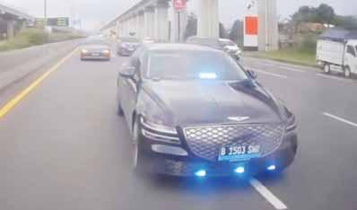MENGGANGGU: Mobil pribadi tertangkap kamera menyalakan lampu strobo untuk meminta jalan.