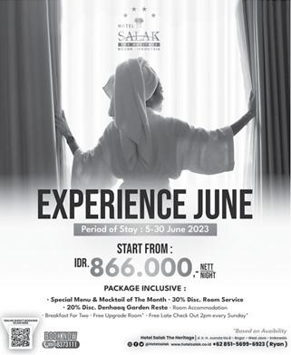 kepuasan dan kenyamanan bagi para tamu kami,” ujar General Manager Aston Bogor, Nurhayati Basir kepada Radar Bogor, akhir pekan lalu di sela kegiatan. Program tersebut hanya berlaku untuk tamu yang menginap. Dengan harga mulai dari Rp1,678,000 net/malam. Harga tersebut sudah termasuk sara-