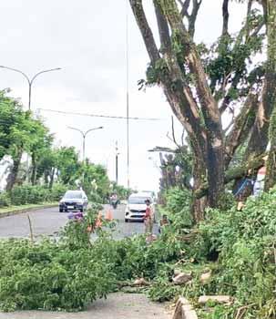 CIBINONGPemerintah Kabupaten Bogor mulai melakukan pemangkasan sejumlah pohon besar di sepanjang Jalan Tegar Beriman, Cibinong. Upaya ini dilakukan sebagai langkah antisipasi menghadapi cuaca ekstrem yang belakangan kerap melanda dan berpotensi menyebabkan pohon tumbang.