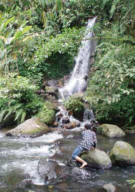 BERSANTAI: Penulis menikmati momen di Curug Macan dengan air yang