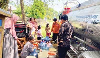 KRISIS AIR: Warga antri menunggu pengisian air dari petugas BPBD. Kekeringan masih melanda tiga kampung di Desa Tapos, Kecamatan Tenjo, meskipun di Sebagian wilayah hujan deras.