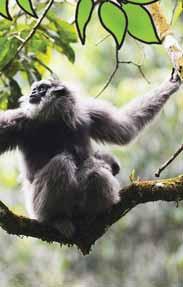 DI ATAS POHON: Satwa endemik Owa Jawa bersantai di atas pohon-pohon tinggi di antara rerimbunan hutan Gunung Salak, Desa Malasari.