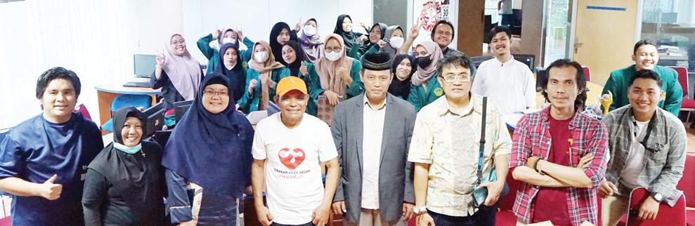 FOTO BERSAMA: Ketua Prodi Komunikasi dan Penyiaran Islam (KPI) Universitas Ibn Khaldun (UIKA) Bogor, Dewi Anggraeni (depan, ketiga dari kiri), CEO Radar Bogor Grup, Hazairin Sitepu (depan, keempat dari kiri), bersama tim Radar Bogor Group dan mahasiswa KPI UIKA berfoto bersama usai menggelar acara penutupan program praktek pengalaman lapangan (PPL) program studi KPI UIKA di Kantor Graha Pena, Radar Bogor, kemarin.