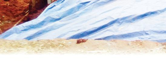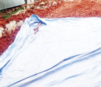 pelaksanaan pekerjaan, pelaksana proyek memasang cerucuk bambu di area longsoran dan menutupi tanah dengan terpal untuk menghindari air hujan.