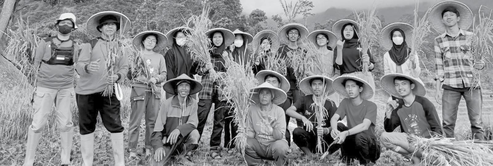 Satria Utama perwakilan BEM UI Zidan, Warga Kampung Cisadane, Cijahe, Baduy Luar berfoto bersama CEO Radar Bogor Group Hazairin Sitepu usai berdiskusi tentang Baduy, tadi malam.