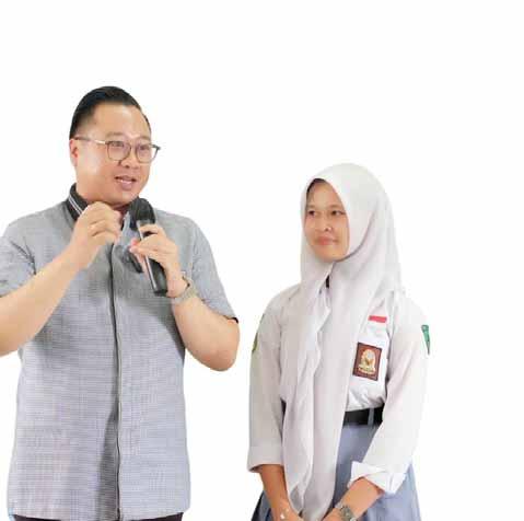 dan duta anti minuman bersoda,” jelas salah satu siswa yang menjadi duta sekolah saat tampil di depan juri . Program-program mereka diberi nama yang menarik dan mudah diingat, seperti ‘Mariksa, Mari Kita Sarapan’ dan ‘Sehat Cantik Tiap Hari Tanpa Sampah dan Plastik’ Setiap Kamis setelah Salat Dzuhur, seluruh siswa secara rutin melaksanakan kegiatan kebersihan lingkungan sekolah. Menariknya, para siswa membawa sendiri peralatan kebersihan dari rumah dan bersamasama membersihkan area sekolah. Kegiatan ini tidak hanya menumbuhkan rasa tanggung jawab, tetapi juga memperkuat nilai gotong royong di kalangan peserta didik. Selain kebersihan harian, sekolah yang dipimpin Teti Hermiati ini juga memiliki program pengumpulan sampah setiap bulan. Sampah yang terkumpul tidak langsung dibuang, melainkan dimanfaatkan kembali menjadi karya