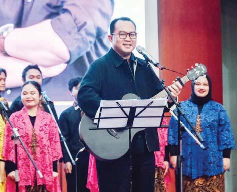 KENANGAN: Rektor IPB Prof Dr Arif Satria memetik gitar sambil bernyanyi dalam momen malam kebersmaan dengan mahasiswa, yang bertepatan dengan berakhirnya jabatan karena dipromosikan sebagai Kepala BRIN.
