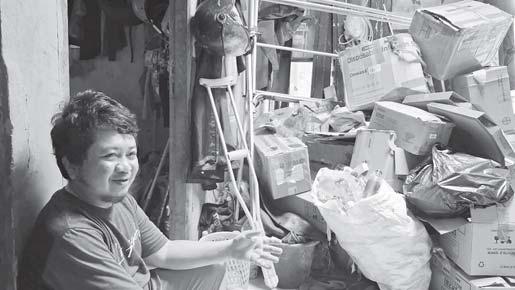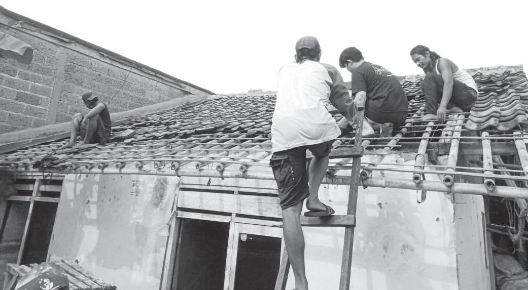 ngojek di pangkalan dan ngambilin rongsokan untuk dijual,” katanya. Pendapatan itu tentu jauh dari cukup untuk memperbaiki rumah yang hampir roboh tersebut. Bahkan, untuk kebutuhan seharihari saja keluarga ini harus berhemat sedemikian rupa. Setiap kali hujan deras, mereka harus memindahkan kasur dan barang-barang ke sudut rumah yang paling sedikit bocor. Luthfi sudah berulang kali berusaha mengajukan bantuan Rumah Tidak Layak Huni (RuTiLaHu). Mulai dari kelurahan, kecamatan, pemerintah kabupaten, hingga berbagai akun Instagram pejabat dan instansi terkait telah ia datangi dan hubungi. “Kelurahan saja katanya ajukan enam, yang keluar cuma tiga. Saya sudah lapor ke IG bupati, wakil bupati, Pemkab Bogor, kecamatan, PUPR, semuanya. Tapi nggak ada respons,” keluh nya.