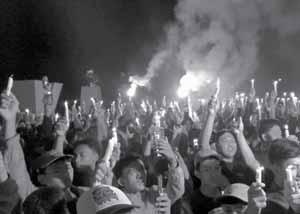 DOA BERSAMA: Ribuan masyarakat Bogor berkumpul di depan Stadion Pakansari, tadi malam. Mereka menyalakan lilin sebagai bentuk belasungkawa atas tragedi di Stadion Kanjuruhan.METROPOLIS