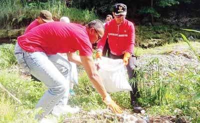 Sebelum memungut sampah, Bima bersama jajaran personel Dinas Lingkungan Hidup, Satgas Sungai Ciliwung, dan Badan Sosial Lintas Agama (Basolia) Kota Bogor menggelar upacara Hari Kesaktian Pancasila.