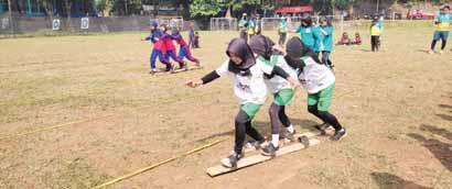 EKSKUL: Anak-anak berlomba bakiak di Lapangan GOR Pajajaran. Olahraga tradisional merupakan salah satu cabang ekstrakurikuler di