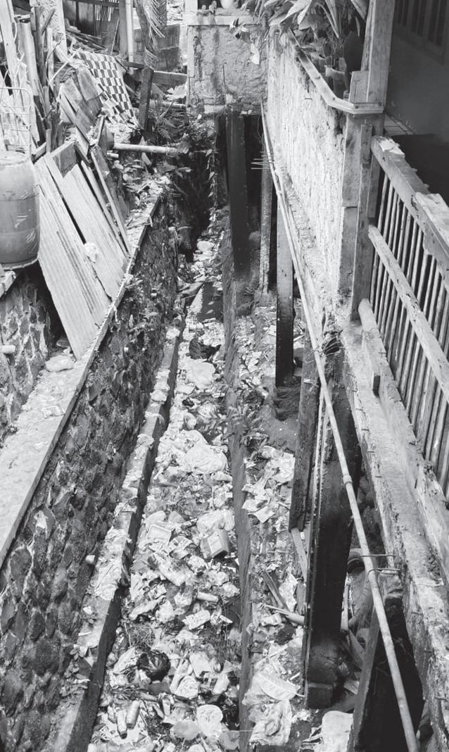 Sedikitnya ada delapan bangunan liar, dua di antaranya merupakan bangunan permanen, yang berdiri di bawah saluran air, dan pedestrian untuk pejalan kaki.