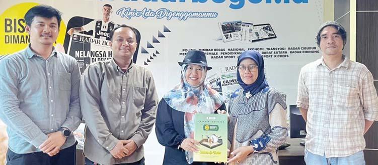 KOLABORASI: CEO Radar Bogor Nihrawati AS (tengah) menerima silaturahmi Ketua Pelaksana BiiF Dr. Karmanah, SP., M.Si., (kedua dari kanan) di Graha Pena Radar Bogor, pada Rabu (3/12). SIlaturahmi ini mengawali rangkaian kegiatan BiiF selama bulan Ramadan tahun depan.