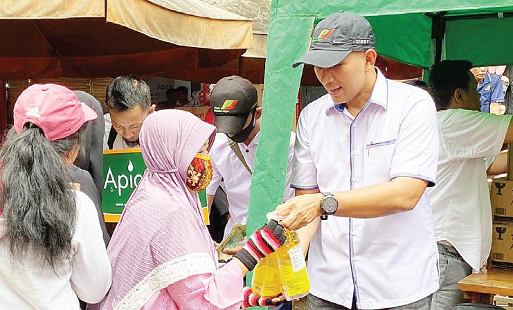 para pedagang pasar. Pihaknya menjual dengan harga Rp 14 ribu per-liter sesuai harga eceran tertinggi (HET) yang ditetapkan oleh pemerintah.