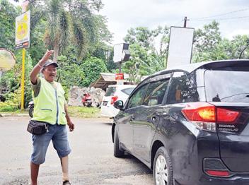 ATUR: Ujang saat mengatur mobil yang sedang parkir di salah satu bilangan di Kota Bogor, kemarin.