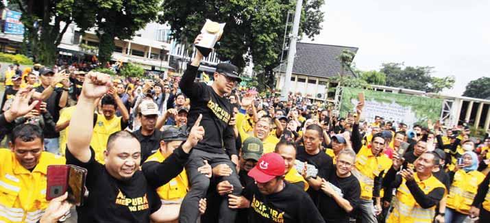 kepada pasukan kuning tersebut. Saya kira ini harus sangat diapresiasi. Kita sudah sampaikan, bisa jadi kita akan mengambil sebuah kebijakan,” kata Atang Trisnanto. Atang juga mengapresiasi semua petugas yang bersamasama menjaga lingkungan Kota Bogor. ”Di saat warga Kota Bogor belum terjaga, mereka sudah terjaga. Di saat warga Kota Bogor sudah istirahat, mereka masih menikmati kelelahannya,” imbuhnya. Meski begitu, pihaknya bersama Pemkot Bogor masih merumuskan bentuk apresiasi yang dimaksud. Mereka harus menyesuaikan dengan regulasi yang berlaku beserta anggarannya. (ded/fat/d)